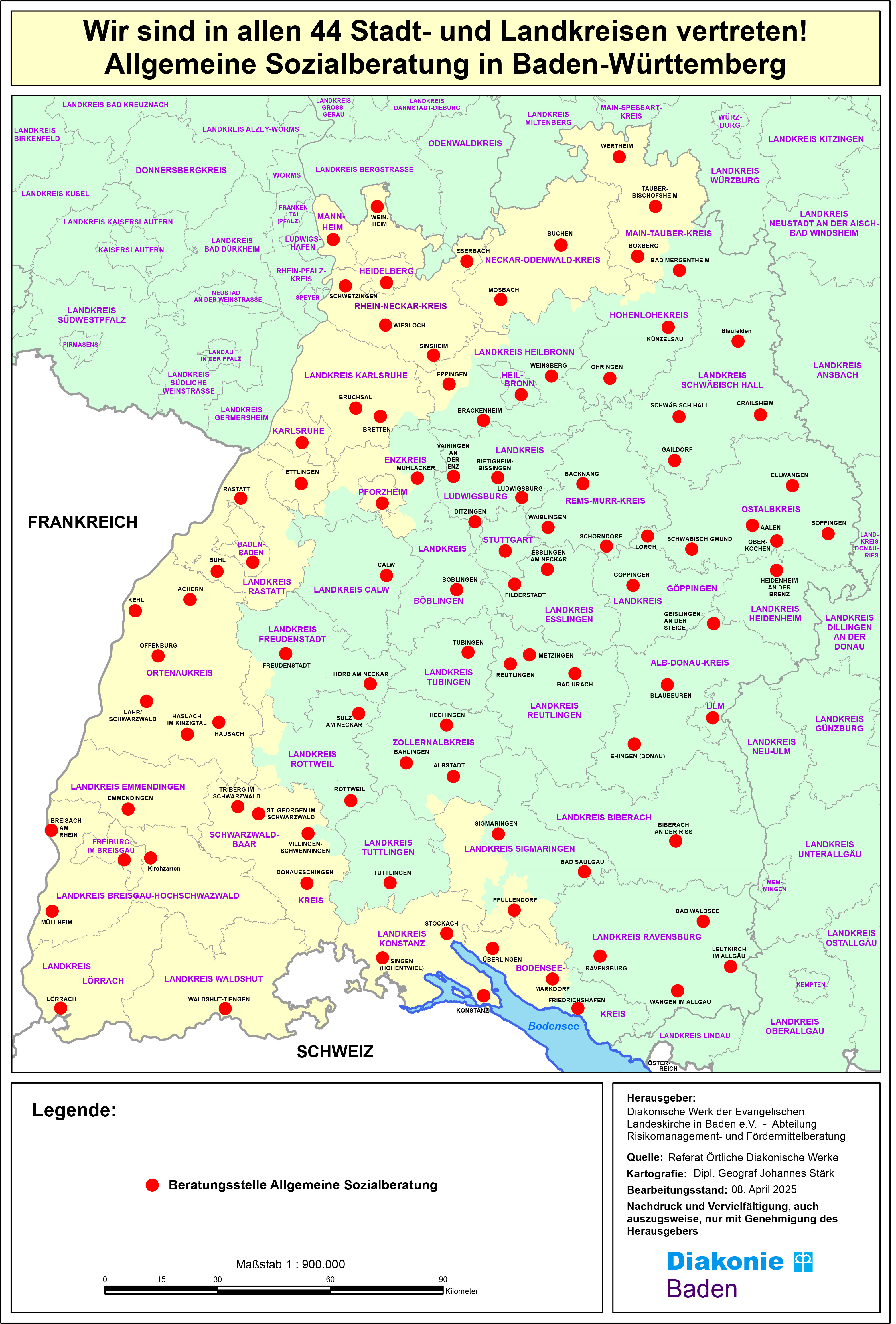 Stuttgart/Freiburg/Karlsruhe, 30. September – Mit Beginn der kalten Jahreszeit steigen Heiz- und Energiekosten. In der Sorge, dass sie ihre Nebenkosten oder die kommende Jahresabrechnung nicht mehr bezahlen können, suchen in diesem Zeitraum viele Menschen Unterstützung in Anlaufstellen der Allgemeinen Sozialberatung der kirchlichen Wohlfahrtsverbände. Die Allgemeine Sozialberatung ist für viele Betroffene die erste Anlaufstelle. In allen 44 Landkreisen in Baden-Württemberg (s. Standortkarte) beraten Caritas und Diakonie Menschen in persönlichen und sozialen Notlagen – sei es bei drohender Armut, Wohnungsverlust, Schulden oder Krankheit. Das Angebot ist kostenlos, für alle offen, vertraulich und ohne bürokratische Hürden. Finanziert wird der Dienst in den meisten Landkreisen ausschließlich aus kirchlichen Mitteln.